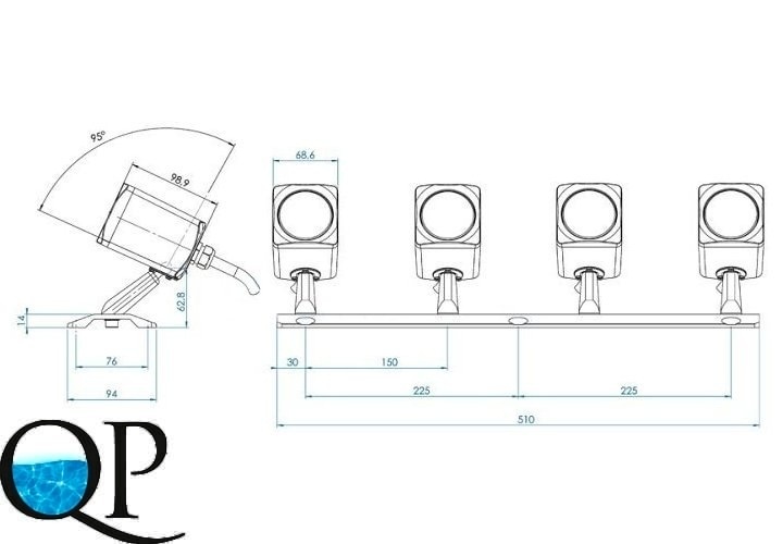 Светильник может быть погружен в воду, либо установлен над водой.
