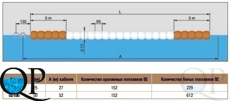 Разделители дорожек серии "92" производителя Astral. Дорожки идут в комплекте с полиэстеровым шнуром, поплавками и крюком.