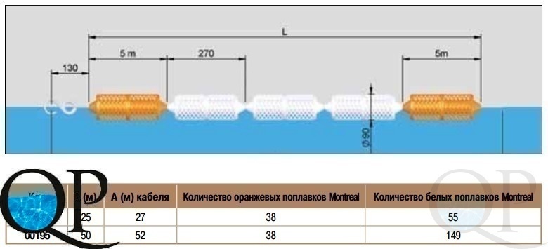 Разделители дорожек серии "Montreal" производителя Astral. Дорожки идут в комплекте с полиэстеровым шнуром, поплавками и крюком.