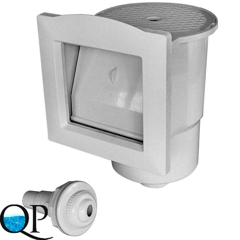 Скиммер с подающей форсункой для использования в бетонных и пленочных бассейнах, а также пластиковых и металлических сборно-каркасных бассейнах. Закладные изготовлены из ABS-пластика с добавками для устойчивости к химии, воздействию УФ и атмосферных явлений.