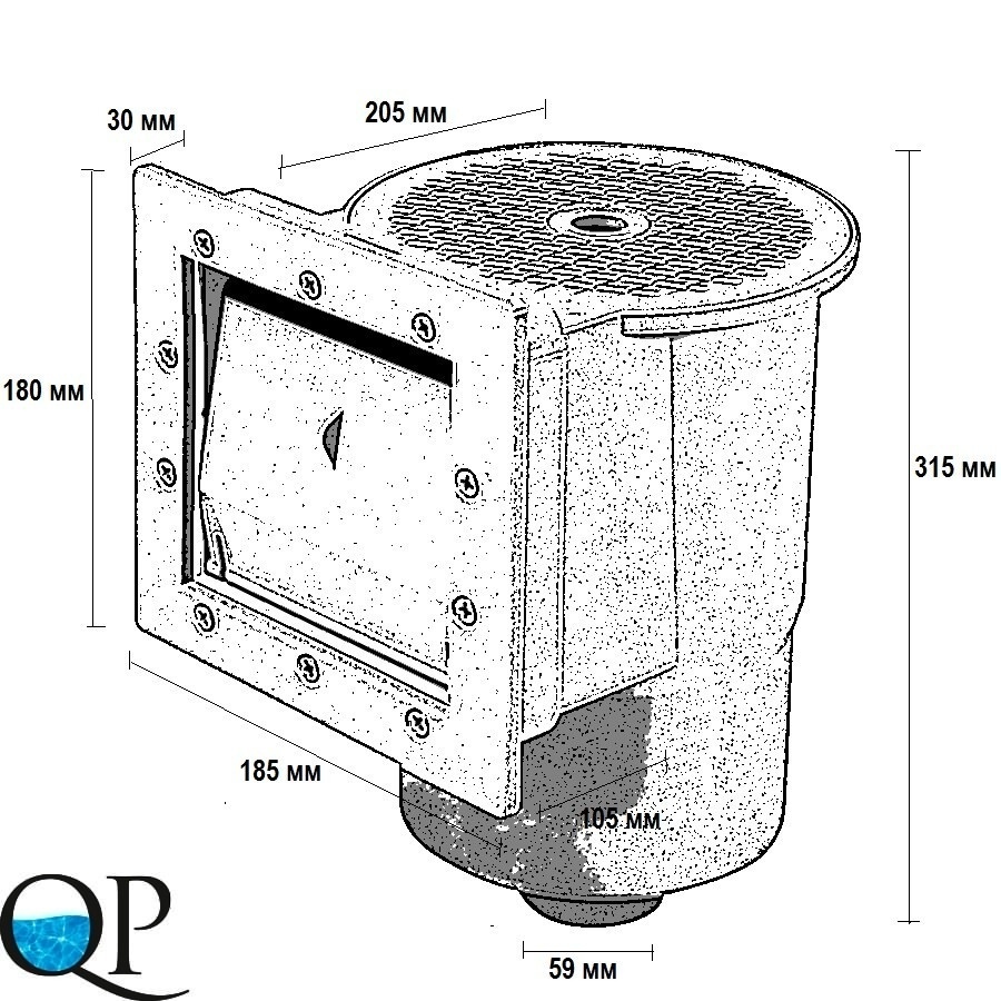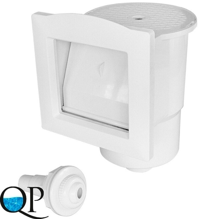 Скиммер с подающей форсункой для использования в бетонных и пленочных бассейнах, а также пластиковых и металлических сборно-каркасных бассейнах. Закладные изготовлены из ABS-пластика с добавками для устойчивости к химии, воздействию УФ и атмосферных явлений.