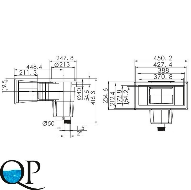 Скиммер с широкой горловиной устанавливается в плёночные бассейны. Изготовлен из прочного ABS-пластика, устойчивого к ультрафиолету, давлению воды и химическим реагентам.
