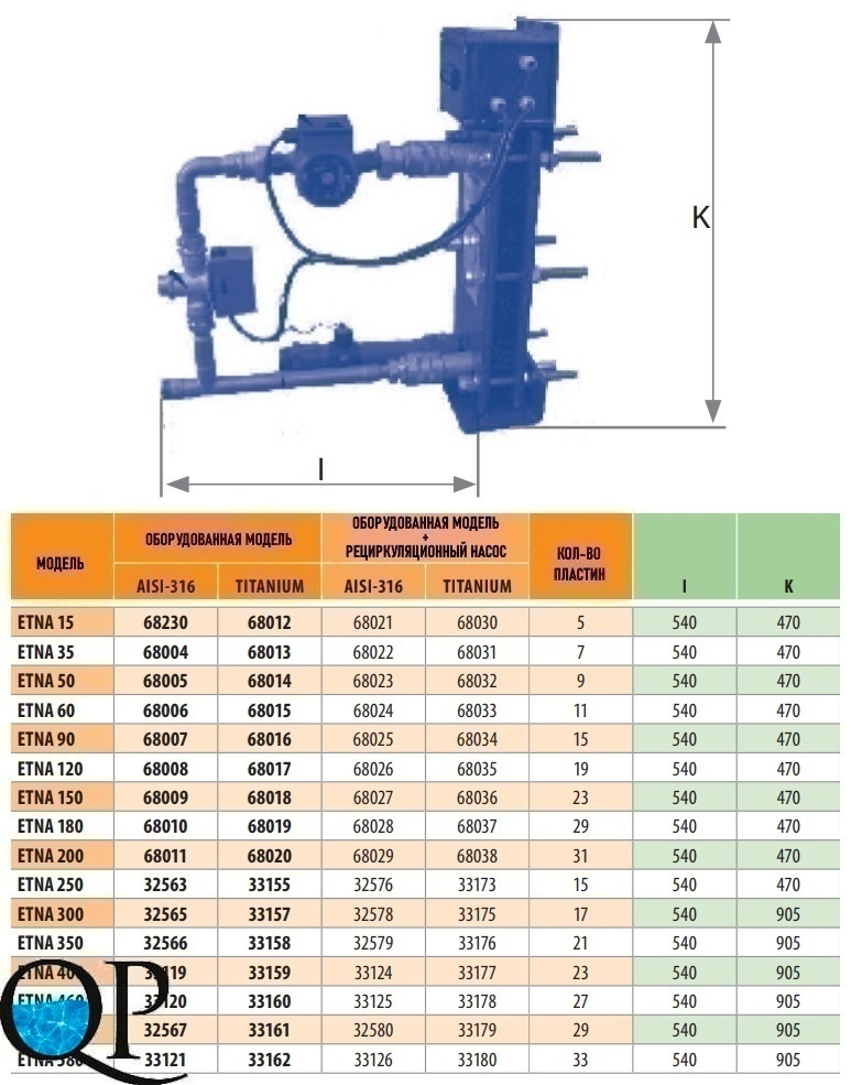 Оборудованная модель с рециркуляционным насосом пластинчатого теплообменника серии Etna EQ+P относится к классу «вода/вода».