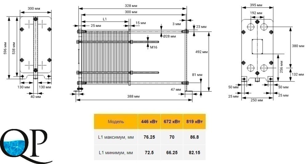 Теплообменник пластинчатый Aquaviva 819 кВт, AISI 316L
