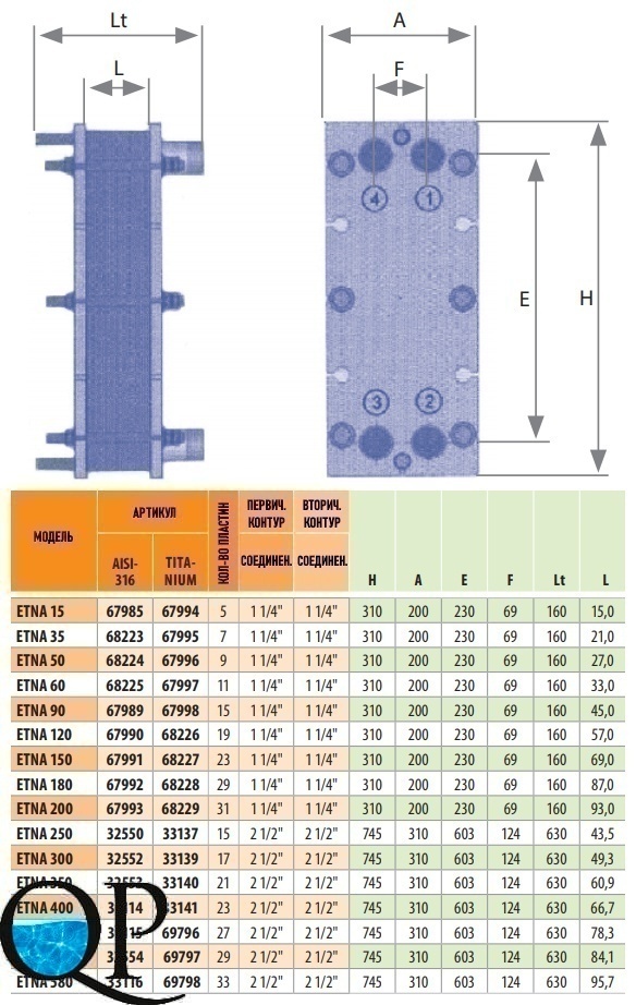 Базовая модель пластинчатого теплообменника серии Etna относится к классу «вода/вода».